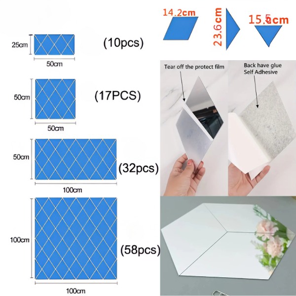 Materijal: Akrilno ogledalo sa zaštitnim filmom (ukloniti pre upotrebe)