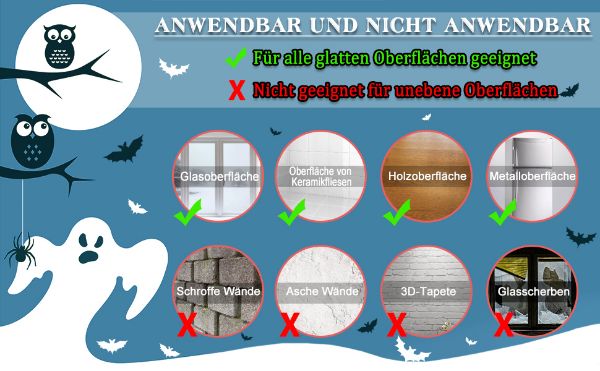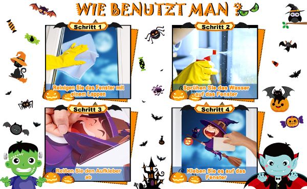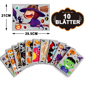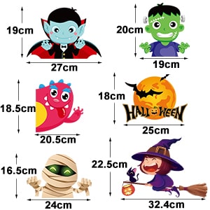 • Dimenzije: nalepnice za prozore za Noć veštica, sastavljene od 10 nalepnica, svaka dimenzija 21 x 29,5 cm