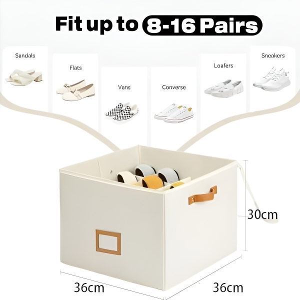 Organizator obuće SHOVERA je dizajniran da primi 8-16 pari obuće, uključujući sandale, papuče i patike, u kompaktnoj veličini od 36x36x30 cm. Njegov sklopivi dizajn omogućava lako odlaganje kada se ne koristi, što ga čini savršenim za domove, studentske sobe i sezonsku obuću.