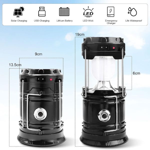 Držite svoju svjetiljku napunjenom uz dvije praktične opcije: solarno napajanje i USB punjenje. Ugrađene solarne ćelije na vrhu svjetiljke omogućuju ekološki prihvatljivo punjenje, dok uključeni USB kabel nudi brzu i pouzdanu alternativu. Ova dvostruka funkcionalnost osigurava da uvijek imate rezervnu opciju, bilo da ste izvan mreže ili blizu izvora napajanja.